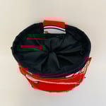 - All materials upcycled except for the strap and cord